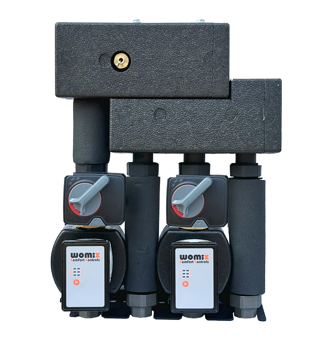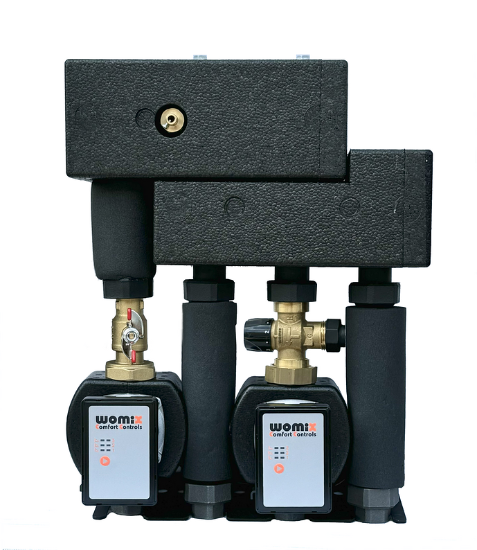 MINI-DUO 3 - obieg z zaworem mieszającym obrotowym, siłownikiem i zaworem zwrotnym + obieg z zaworem mieszającym obrotowym, siłownikiem i zaworem zwrotnym