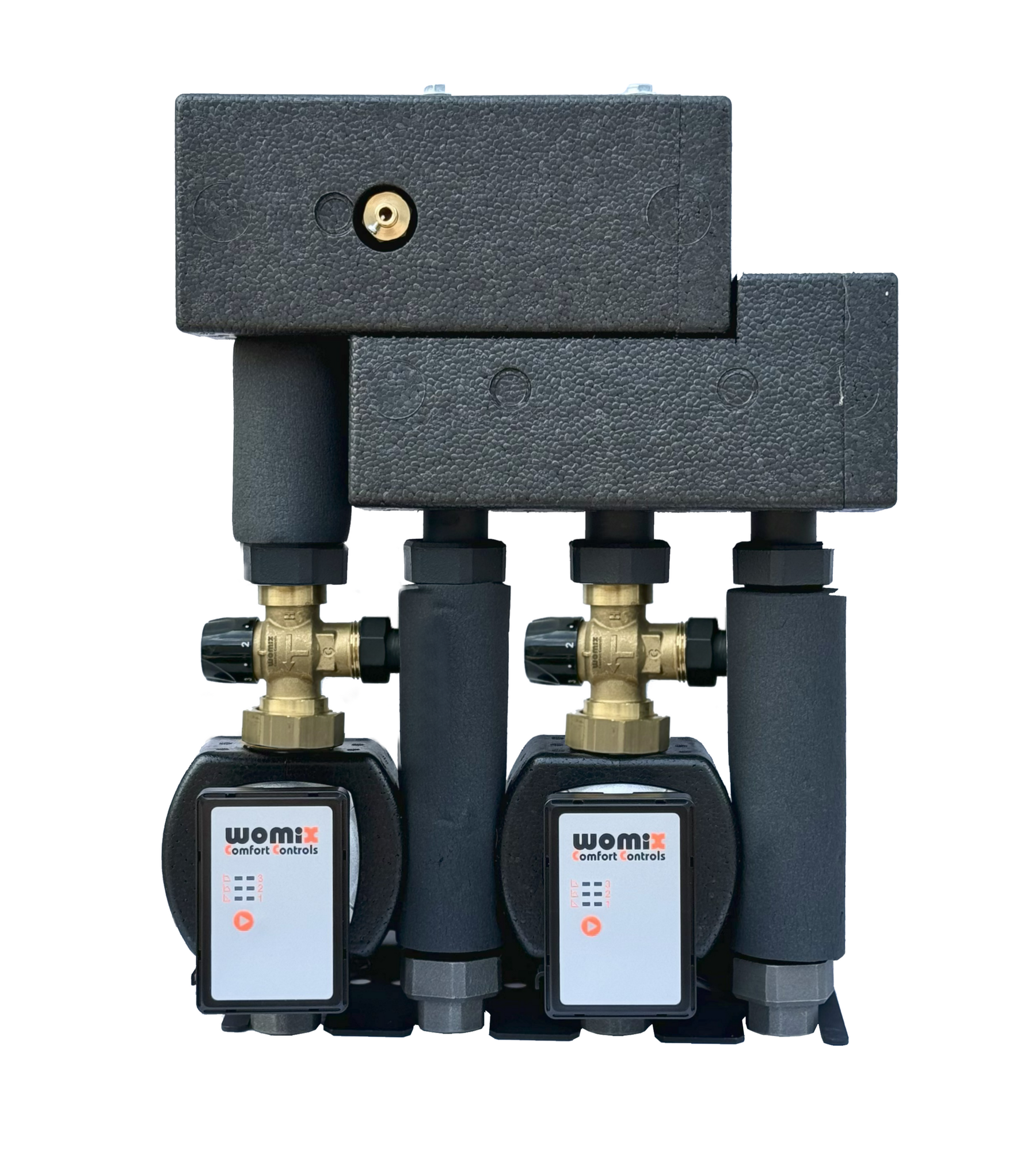 MINI-DUO 5 - obieg z termostatycznym zaworem mieszającym 20-45° i zaworem zwrotnym + obieg z termostatycznym zaworem mieszającym 20-45° i zaworem zwrotnym